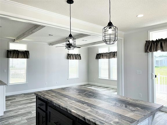 55+ age qualified community. This brand new 3-bedroom 2 bath showcases the popular modern farmhouse style throughout. From the two-tone kitchen cabinets and barnwood island to the rough hewn ceiling beams, this home is beautifully designed. The open kitchen boasts stainless steel appliances, a large island perfect for entertaining, glass tile backsplash, and a farm sink. The kitchen flows onto the spacious living room. The home features solid surface flooring throughout. There is natural light in every room. The sliding glass door in the dining area leads to the welcoming front porch. Can you imagine enjoying your morning coffee or afternoon drinks with friends in this lovely new home? The master bedroom has a stylish ceiling fan along with a gorgeous en-suite bathroom with double sinks, glass walk-in shower and a huge walk-in closet. With landscaping and sprinkler system already installed, this home is ready for you to just move in and enjoy! Oak Bend is a premier age qualified community situated in a peaceful country setting. Residents enjoy many amenities including a heated pool, clubhouse, horseshoe pits, workout room, game room, shuffleboard, and much more! Our active HOA also offers many monthly and weekly activities. There's always something fun going on, so give us a call today for your personal tour. **CONTACT SALES OFFICE AT (352)857-8289 FOR MORE DETAILS ON THIS HOME**