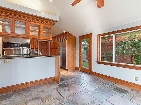 Great location on quiet street. Amazing south facing terraced backyard with many mature fruit trees, canyon view, waterfall, pool, hot tub, manicured garden, big covered deck connected to huge living and dining areas for entertainment.