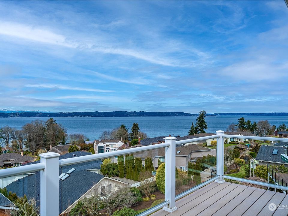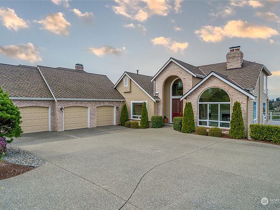 Panoramic Puget Sound views create the ultimate home retreat.This home boasts stunning views with large, over sized wrap around windows. Enjoy Views from living room,bedrooms, den,primary, patio and gourmet kitchen featuring stunning granite countertops,top of the line appliances opening to family room w/gas fireplace. High quality Azek view deck, with sun setter auto shade.Primary suite w/more spectacular views,automated shades,private deck for enjoying sunsets.Ensuite has been thoughtfully designed and updated to include heated floors,custom cabinets, tile, spacious shower, providing the ultimate in relaxation and comfort.The outdoor space of this home is just as impressive, meticulous yard, oversized 3 car garage. A/C Virtual staging