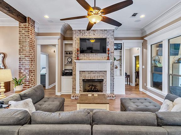 Beautiful 4-bedroom, 3-bath home featuring a triple split, open floor plan and a backyard made for entertaining. The living room offers luxury flooring, crown molding, exposed brick columns, recessed lighting, built-in cabinetry, and a gas fireplace framed in brick. A wall of windows provides views of the in-ground fiberglass pool and patio. The kitchen includes a large granite island, gas cooktop, stainless appliances, walk-in pantry, and decorative brick backsplash. The spacious primary suite features a tray ceiling, his-and-her vanities, jetted tub, custom tile shower, and a large walk-in closet. Two bedrooms share a Jack-and-Jill bath, and the fourth bedroom offers a private guest layout. Outside, enjoy a private oasis with a pool, outdoor gas fireplace, and open patio—perfect for relaxing or entertaining. The home also includes a two-car garage, professional landscaping, and excellent curb appeal. Conveniently located near top-rated schools, shopping, and dining, this home combines comfort, style, and a great location in the heart of Walker.