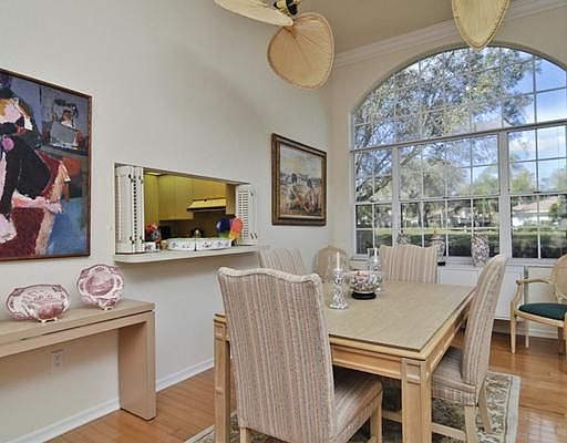 EXCEPTIONAL VIEWS OF LAKES AND GOLF COURSE.... End unit in sought after Penshurst Park with privacy and perfect views. Courtyard garden entry. Fabulous space with high ceilings, fireplace, wood floors, and wet bar. Enclosed lanai with corner views...the perfect place to be to enjoy watching the wildlife and golfers. Large dining room window overlooks greenery. Living room is great for entertaining. Huge master bedroom has double doors leading to lanai. Master bath is renovated with double sinks & large shower with glass block. Master closet is outfitted with custom built-ins. Private guest suite has double closets & en suite bath. Den could be used as a 3rd bedroom, closet has been enclosed as a TV cabinet. Kitchen has newer dishwasher & refrigerator (2009), room for breakfast table & center island. Also replaced in 2009; plantation shutters & shades, AC, central vac, washer and dryer, faucets in baths, and tile in guest bath. Penshurst Park has 42 units, heated pool & spa, social gatherings and is very well run by owners association. Tile roofs were replaced in 2006. The Meadows Country Club offers 3 golf courses, 17 tennis courts, great fitness club, social activities & dining. Enjoy the many trails for walking. If you love privacy & views, you will love this unit & location!!