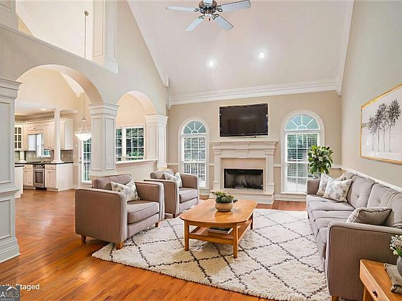 Welcome to 3095 Brombley Dr, a beautifully crafted 4-sided brick home offering 4 bedrooms, 3.5 bathrooms, and an impressive layout designed for both everyday living and entertaining. Perfectly situated on a spacious .44-acre lot, this home blends timeless charm with modern updates in one of Conyers' most convenient and desirable locations. As you enter through the front door, a grand 2-story foyer greets you with elegant sightlines and abundant natural light. To the left is a formal dining room ideal for hosting dinners and gatherings, and to the right, a private office featuring French doors and custom built-in shelving, making it a functional and sophisticated workspace. The heart of the home is the vaulted family room, highlighted by a beautiful fireplace, oversized windows, and an open flow to the kitchen and breakfast area. The eat-in kitchen is both stylish and functional with white cabinetry, granite countertops, a large center island, and stainless steel appliances, including double wall ovens and a gas cooktop-a perfect setup for the home chef. The primary suite on the main level offers a true retreat with a vaulted ceiling, a spa-inspired bathroom with dual vanities, a relaxing jetted soaking tub, a separate shower, and a generous walk-in closet. Upstairs, you'll find three spacious bedrooms with ample closet space and a full bath, creating comfortable accommodations for family or guests. The fully finished terrace level provides endless possibilities and extra living space. It includes a custom bar, game room, bonus/media room, a bedroom, and unfinished storage-perfect for entertaining, multigenerational living, or hobbies. Step outside to enjoy your private backyard oasis. The elevated deck overlooks the yard, ideal for grilling and gatherings, while the covered patio below provides a shaded retreat for relaxing year-round. The spacious yard offers room for play, gardening, or future enhancements. Additional highlights include a 2-car garage, ample storage, and a prime location just minutes from shopping, dining, parks, and easy access to I-20 for a smooth commute. This home combines classic architecture, thoughtful updates, and a flexible floor plan that truly stands out.