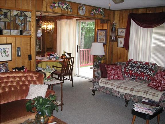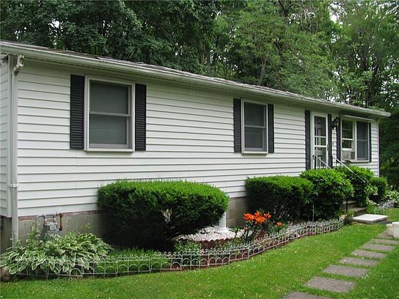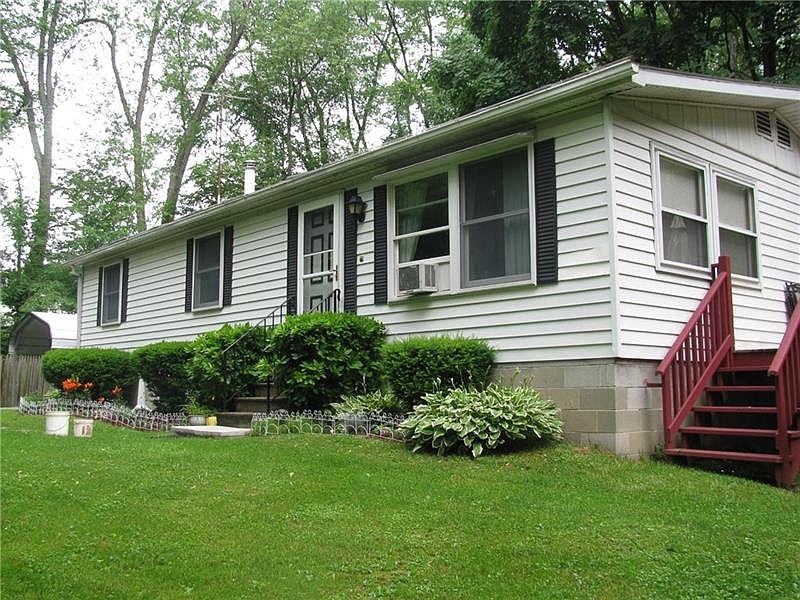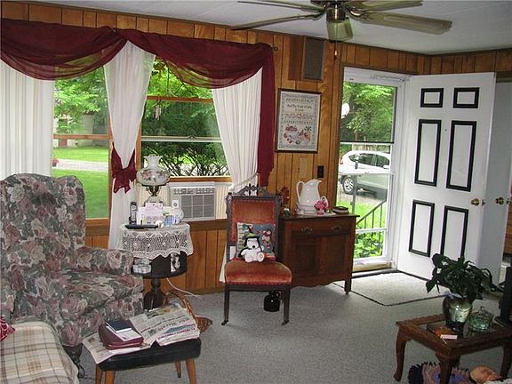 Here is your own private oasis! Very private setting (approx. 1.5A of lush grass and greenery House is a 3 BR ranch(doublewide) home nicely cared for, Full 12 block basement, first floor laundry, spacious deck to enjoy the privacy or sit by the natural spring. House has an attached carport but also a two car detached garage, plus two large metal sheds. Seller has perpetual right of way. Seller maintains the private lane. This property is accessed by going through a trailer park.