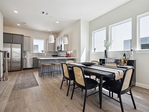 Discover Elevated Living at White Oak Station by City Choice Homes. an exclusive residential community featuring premium amenities including a private pickleball court, resident courtyards, and dog park. This 3-story home offers 3 bedrooms, 3.5 baths, hardwood floors throughout, and a balcony with gas/water connections. The main living area boasts a sun-filled Great Room over 30’ wide, a gourmet kitchen with quartz countertops, shaker cabinetry, and premium appliances. The 3rd floor includes the owner’s suite with 10’ tray ceilings, a custom walk-in closet, and a spa-like bath with soaking tub, glass shower, and dual vanities.
