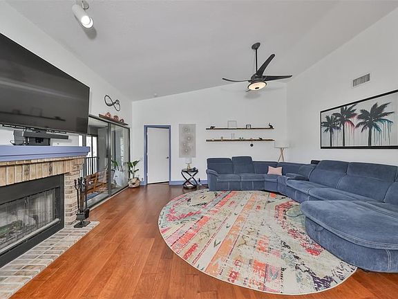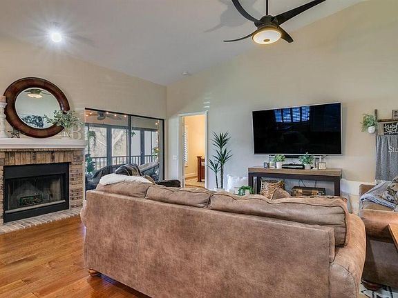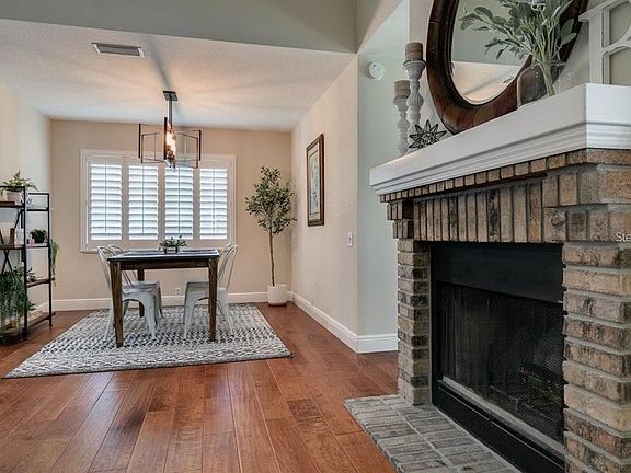 Welcome home to this beautiful 3 bedroom 2 bath condo tucked away in the charming community of Landmark Oaks! Ever want the luxury of sipping morning coffee over looking water, but didn't want the price tag or insurance cost of beach front? Well, you found it! This home has a beautiful VIEW of the COMMUNITY POND & POOL Truly Florida living! The home features a WOOD BURNING FIRE PLACE, hardwood floors throughout, VAULTED CEILINGS, laundry room, and a formal dining room. This split floor plan is perfect for those wanting to entertain guest, creating a home office or kids bedroom. The primary bedroom has plenty of storage with a WALK IN CLOSET and double vanity! Additionally, the home features an oversized 1 car garage just a few steps away equipped with a CAR CHARGER. HOA DUES INCLUDE BASIC CABLE, WATER, SEWER, TRASH AND EXTERIOR!