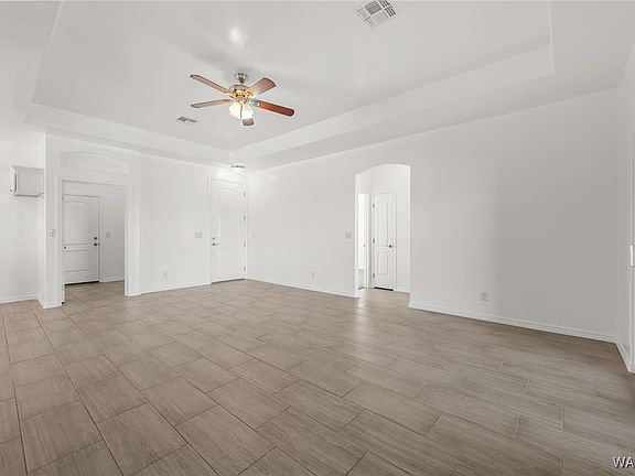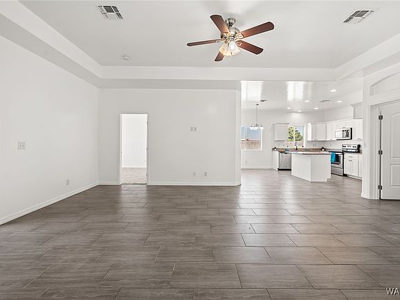 Like-new 3-bedroom, 2-bath home built in 2017, located on a corner lot in the desirable Hualapai school district. Move-in ready with brand-new paint and new carpet throughout. The kitchen features granite countertops, and the primary bedroom includes a walk-in tile shower. Step ceiling in the living room and ceiling fans throughout. Tile roof, attached 2-car garage, double gate for RV parking, and a fenced-in block wall yard for added privacy.
