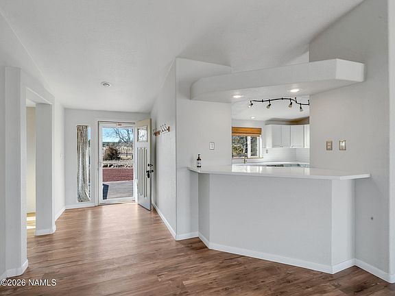 Situated on 4.31 acres backing National Forest, this 3-bedroom, 2-bath home offers sweeping panoramic views, including breathtaking views of the San Francisco Peaks. This home is located off Pine Aire Rd, a well-maintained county road with year-round access. The scenic drive showcases some of the most beautiful surroundings the Parks community has to offer. The property also features impressive back-porch views, enhancing its appeal for both personal use and long-term investment. The clean style, beautiful bathrooms, a cozy family room, and a separate laundry room all add extra convenience. The property offers a balance of privacy, functionality, and scenic mountain views in a peaceful rural setting.