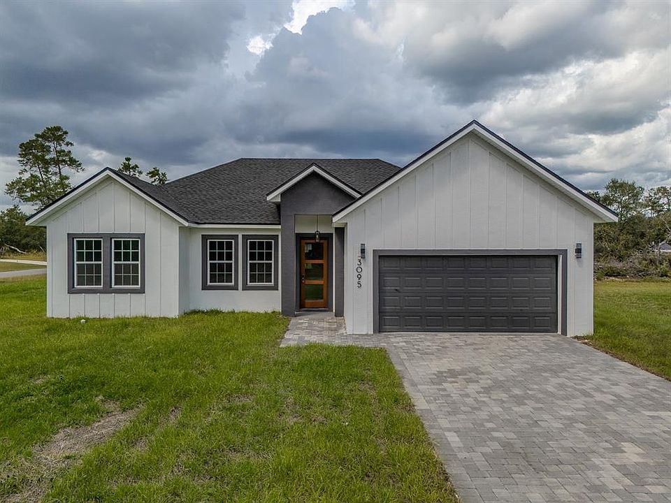New corner home on an oversized lot – modern and sophisticated in Ocala! If you're looking for a modern, spacious, and stylish home, look no further. This new home was built on a large corner lot, featuring high-quality vinyl siding, combining practicality with beauty. Upon arrival, the facade immediately impresses with its LED lighting, highlighting the contemporary design. Upon entering, you're greeted by an open-concept living room, integrated with the dining room and kitchen. Sliding doors bring natural light and connect the interior spaces. The home features a large covered lanai in the back, perfect for family leisure and relaxation, offering comfort and practicality in a space integrated with the outdoor area. The kitchen is ready to use: white wood cabinets, stainless steel appliances, and a counter ideal for quick meals. In the private area, the master suite invites comfort, with a spacious walk-in closet, a private bathroom with double sinks, and a relaxing bathtub. The other bedrooms offer versatility for entertaining, setting up an office, or creating personalized spaces. The garage accommodates two cars and features an automatic gate for added convenience and security. Located in a rapidly growing area of ??Ocala, this home combines modernity, space, and guaranteed appreciation. Don't miss this opportunity! Schedule your visit and discover how easy it can be to fall in love with your new home.