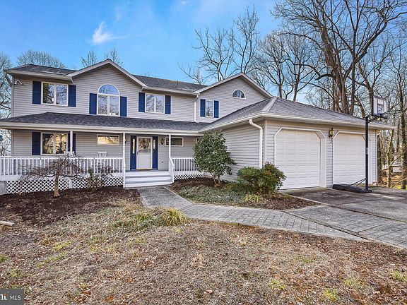 Large Waterview home on a quiet court in coveted Riva, in the Beards Creek community of Berkshire. Wake up to the sunrise in this large 5 bedroom 3 full bathroom 3-story house set on a quiet cul de sac. This home has great privacy as it is further set back from the road by a long driveway, which combines with a two-car garage to offer ample parking to family and guests. This home was made for outdoor living with its beautiful private backyard and perched on a .35 acre lot. Upon entering the home you will notice the beautiful hardwood floors on the main level. There is an office, which could also be used as an additional bedroom or in-law suite, and a full bathroom. The gourmet updated kitchen has an island with granite countertops and is open to the family room with a cozy fireplace. There are sliders to the deck overlooking Beards Creek. The separate dining room and step-down living room also both have amazing views and make this home great for entertaining with a nice open floorplan. There is also a large laundry room on the main level. Heading up to the second floor, the primary bedroom has a deck overlooking the water as well as a large walk-in closet and spa-like primary bathroom with a double sink vanity, corner soaking tub, heated tile floors, and a large tiled shower to add to the indulgence. The 3 other bedrooms and a full guest bathroom complete the upper level. Heading down to the basement which has new carpet, there is a large open space for a recreation room or fitness area with a walk-out side door, a bedroom, a workshop area, and plenty of room for storage. To add to all this, the home has a new roof completed in 2021. This is a premium lot in a very well-established neighborhood that hosts lots of family events, has a community marina with available slips at a great price, and is conveniently located close to DC, Annapolis, VA, and Baltimore. Don't miss this beautiful home.