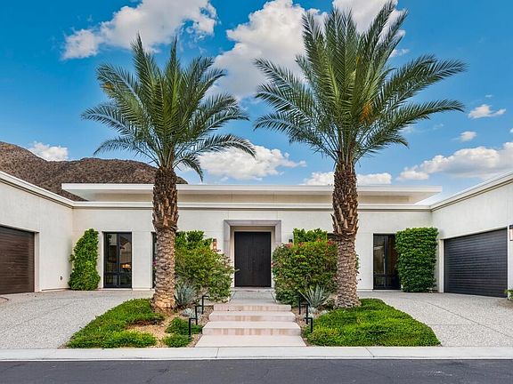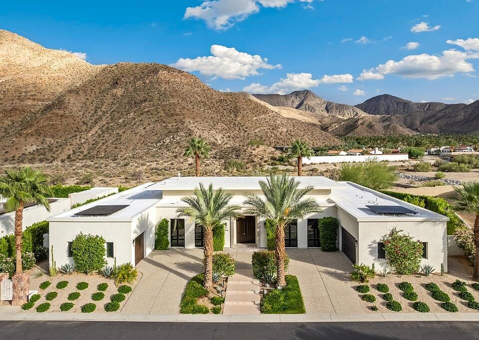 A rare offering in the prestigious Monte Sereno enclave of Andreas Hills, South Palm Springs--designed to captivate from the moment you arrive. This 4,392 sq. ft. showpiece features 4 bedrooms and 4.5 bathrooms, with every bedroom boasting its own private sanctuary bathroom for the ultimate blend of comfort and privacy. Set on one of the community's few unobstructed expansive lots--and you own the land--this home commands panoramic views of the San Jacinto Mountains, a backdrop as iconic as Palm Springs itself. Opportunities of this caliber are few and fleeting. Step inside and prepare to be wowed: 60 feet of Fleetwood glass sliders dissolve the boundaries between indoors and out, flooding the interiors with natural light. At the heart, a dramatic great room with dual living areas frames jaw-dropping mountain vistas. The chef's kitchen doubles as a statement piece--complete with dual islands, premium appliances, abundant storage, and space designed for lively entertaining or intimate dinners.Outside, resort living takes center stage. Updated landscaping surrounds a private oasis with a sparkling pool and spa, cozy fire pit, and multiple dining and lounge zones--all perfectly positioned for unforgettable desert sunsets.Inside, luxury continues with bespoke finishes, a formal dining room, media room, and a 3-car garage with new epoxy floors. Each space is curated to spotlight the views while delivering modern comfort and timeless elegance. OWNED solar adds sustainability without compromise.All this within a gated enclave with 24-hour security--delivering both prestige and peace of mind. Scale. Setting. Amenities. This residence represents the very best of Palm Springs luxury living. Book your exclusive tour today.
