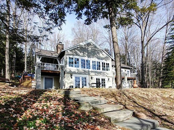 The best of both waterfront worlds is right here on Mickey Lake! Enjoy the peaceful calm of a no-wake lake with channel access to the excitement of all-sports Long Lake - one of the gems of northern Michigan waterfront. This classic lakefront cottage underwent a 2004 Ken Richmond-designed remodel to become an elevated yet comfortable year-round home with custom woodwork and spectacular views from most rooms. You'll love the impressive great room that greets you upon entry, featuring tongue-and-groove beamed cathedral ceilings anchored by a stone fireplace, wood floors, and a wall of windows overlooking the water with a convenient window bench. Gracing the kitchen are granite counters, stainless appliances, custom cabinetry, dual ovens, and a walk-in pantry. The primary suite features a private bath with a soaking tub and shower stall, along with a walk-in closet and doors to the water-side deck. Two more bedrooms and a full bath complete the main level. The walkout level is finished with a large family room with a wood stove, fourth bedroom, and a full bath with a jetted tub, along with a storage room accessed from outside for all the water accessories. The storage in this home is exceptional - you'll find closets galore throughout, all with solid-core wood doors. The heating system is an efficient geothermal heat pump with central air, with a back-up natural gas forced air system; the whole-home generator gives you peace of mind. There are many locales on the exterior of the home designed to maximize your enjoyment of the beautiful surroundings - the water-side deck, the side covered porch, and the walkout patio.