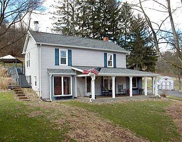 COUNTRY LIVING AT IT'S FINEST, CUSTOM KITCHEN W BRICK HEARTH FIREPLACE/WOODBURNER APPLIANCES LARGE WINDOWS W CUSTOM TREATMENTS LET ALL THE NATURAL LIGHT IN, ORIGINAL HARDWOOD FLOORS, MUDROOM W NEW SLATE FLRS, EXPOSED CHIMNEY 2ND BR, BEAUTIFUL FRONT PORCH, DECK WRAPS AROUND HOUSE, 3RD FLR WALK UP ATTIC, NEW ROOF, SOME NEW WINDOWS, LAUNDRY 1ST FLR., ATTACHED GARAGE W STORAGE, WAINCOATING, BOOKSHELVES, PRIVATE WOODED ACREAGE, HOME SITS OFF ROAD, MUST SEE, WON'T LAST. FRANKLIN REGIONAL SCHOOLS. HOME WARRANTY.