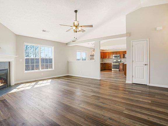 Welcome to this beautiful 3 bedroom, 2 bathroom home in the heart of Newburgh! This inviting residence offers a spacious and thoughtfully designed layout, perfect for comfortable living. Step into the living room and be greeted by vaulted ceilings and a cozy gas fireplace - an ideal space for relaxing or entertaining. The kitchen boast rich brown cabinetry, sleek stainless steel appliances, quartz countertops, and under the cabinet lighting. The owners suite is a true retreat, featuring a luxurious jacuzzi tub, a stunning walk-in tiled shower, a double vanity, and a generously sized walk-in closet. Outside, you'll find a peaceful setting with a pasture behind the home where horses graze, adding a picturesque touch to the backyard. The expanded driveway and extended front porch enhance the homes curb appeal and provide extra space for parking and outdoor entertainment. A 2-car attached garage completes the package, offering convience and additional storage.