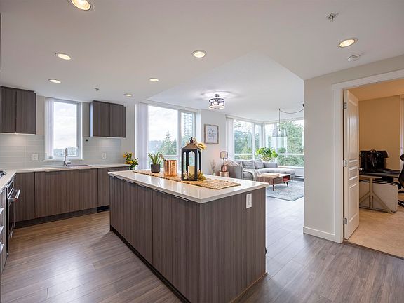 Welcome to Mantyla by Polygon in Windsor Gate community. This corner unit features with over 1000SF 2B2B floor plan with gorgeous panoramic city and green views. Open concept gourmet kitchen with full sets of appliances. South facing and oversized windows bring in natural lights through out the unit. Primary bedroom has a spa ensuite bathroom. Massive storage spaces in the unit. One parking and one full size locker come along. Amenity rooms including party room, gym, patio garden and playground. A significant feature of Nakoma club is shared within the community with over 18000 sft, gym, basketball court, media room, party room, multifunction room, outdoor pool and hot tub etc. Central location closed by shopping, sky train, schools, lafrage lake etc. Please come to visit. OH: Oct4/5 2-4pm