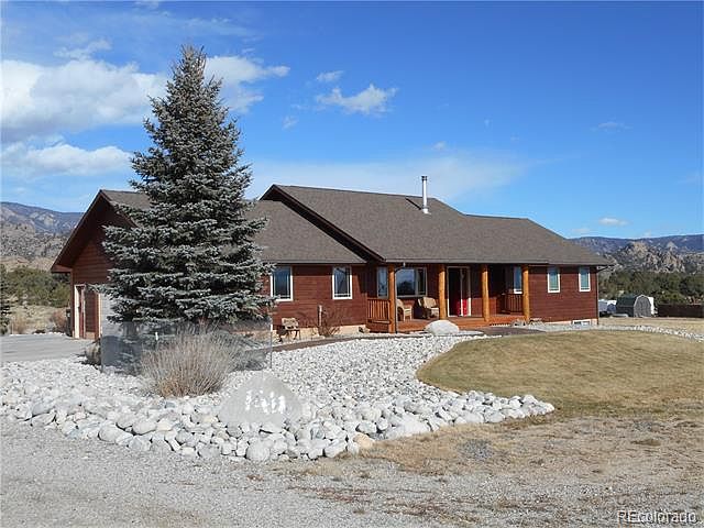 This home is move in ready. Brand new stainless steel appliance including Refrigerator, stove/oven, microwave and dishwasher. Exterior has been stained last year and a brand new 50 year roof installed this year. Main living area has 3 bedrooms, 1 and 3/4 baths, laundry room, kitchen, dining room and living room with a wood burning stove. The lower level has another full bedroom with an attached full bath, 2 other rooms that can be used as an office, study or additional sleeping space. And the LARGE family/great room is fantastic. There is a sprinkler system, outdoor fireplace and seating area with front and rear covered decks to enjoy the views of Buffalo Peaks and Mt. Princeton. In-floor radiant heat and NATURAL GAS. This home is large and ready.