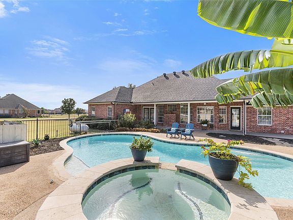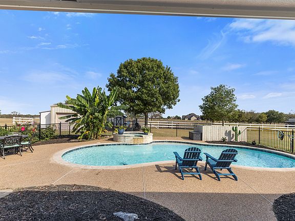 An animal lover’s dream! Enjoy 2 acres of country living—outside city limits and NO HOA! This property is fully fenced and features a run-in barn-loafing shed with 2 horse stalls and water, a hay barn, and a large chicken coop. The land offers sandy loam soil, ideal for horses and easy maintenance. A 20x24 steel-frame shop with electric and a half bath provides the perfect space for projects, storage, or a future man cave. Inside, you’ll find 4 spacious bedrooms, 2 bathrooms, plus an office or bonus room that could easily serve as a 5th bedroom. The open layout includes a large formal dining area, a cozy living room with a fireplace, and a spacious kitchen with custom cabinetry, granite countertops, and a breakfast area. Vaulted and tray ceilings throughout add an airy, elegant feel. The primary suite offers a private retreat with dual sinks, his & her closets, a large soaking tub, and a separate walk-in shower. A split-bedroom design ensures privacy, while the converted garage adds valuable space for your home office or flex room. Step outside to your backyard oasis featuring a travertine gunite pool and spa combo overlooking peaceful acreage—ideal for relaxing or entertaining. The back patio is plumbed for gas, making outdoor grilling easy and enjoyable. The home exterior is enhanced with up-lighting, landscape lighting, eave outlets for Christmas lights, an exterior outlet for a generator, and solar screens on the front windows for added energy efficiency. Recent updates include pool replaster (2019), new pool pump (2025), roof replacement (2025), and new water heater (2023). Conveniently located just 1.2 miles from I-30, 5 minutes from Caddo Mills High School, and zoned to the new Kathy Kirkpatrick Elementary, this home blends country tranquility with easy access to city conveniences. Enjoy small-town charm, local events, and top-rated Caddo Mills ISD schools—all while living your dream of rural Texas living.