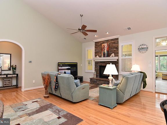 Welcome to an exceptional NV Homes Cavendish Model w/ 3 BD + Bonus Room/3 BA in award-winning Bay Forest. Beautiful paver driveway shoulders serve as walks to paver front door landing (and the back yard). Step into the Foyer onto gleaming wood floors that flow thru the first floor public areas, including a formal Dining Room w/ chair rails, crown moldings, decorative columns on right. To the left, a Guest BD configured as a Study boasts custom paint, crown molding, a ceiling fan (one of 8), a full closet & wall-to-wall carpet. Steps away: a full Bath, an under-stairs storage closet and, coming in from the spacious 2-car garage, the Laundry/Mud Room. The Great Room features a Gas Fireplace w/ stone hearth & trim, a wooden mantel & crown molding. The Great Room, Kitchen & Foyer share a cathedral ceiling and are brightly lit by recessed lighting and windows trimmed w/ Plantation Shutters (which can be found throughout the home). The Kitchen sports a large pantry, upgraded cabinets, granite countertops, stainless steel upgraded appliances, an island w/ chairs casual dining, three square "porthole" windows above a wall of cabinets & room for a table & chairs in a wide Bay Window. The Primary Bedroom, just off the Great Room, features an arched entry space w/ a utility closet for added privacy, along w/ upgraded wall-to-wall carpet, a tray ceiling & ceiling fan, and a Sitting Room extension w/ decorative columns. The Primary Bath, with its own tray ceiling, has a Soaking Tub, Stall Shower & twin vanities w/ large mirrors and premium fixtures. Don't forget the towel warmer! The Primary BD Sitting Room AND Great Room both step into an extraordinary Four Season Room w/ heated tile floors & four window walls looking on deep woods & lawns. The Four Season Room features vaulted ceilings, premium trims, ceiling fans, several skylights & custom designed (removable) stained glass panels near the roofline. From the Four Season Room, step out onto a beautiful deck and down onto a large paver patio w/ sitting wall & fire pit. (There is space for a hot tub with necessary connections should the Buyer prefer one.) A gas grill may convey. Immediately adjacent to the patio are an Outdoor Shower & Changing Room where a meandering walkway takes you back to the front of the house. Upstairs is a large Loft w/ Utility Closet/Attic Space, another BD & Full BA plus Bonus Room above the garage. The Home is accented by several custom-designed stained glass creations and, depending on the strength of an offer, some may convey. This is one extraordinary Cavendish, sited at the edge of deep woods. Don't forget all that Bay Forest delivers, including Natural Gas coming in 2021. The National Association of Homebuilders named Bay Forest Platinum Award Winning #1 Best in American Living Community in 2019. Our amenities, all but unmatched in Sussex County, include: a clubhouse w/ lounge, grille, game room & locker rooms opening onto 3 pools (Lazy River!). Plus 4 tennis courts & a tennis pavilion, outdoor basketball nets, children's play areas, a putting green, bocce lawns, horseshoe pits & a fire pit. Our Recreation 'Barn' - which accommodates a basketball court or 3 pickle ball courts or 450 Bay Forest homeowners & guests at New Year's Eve - opens onto a Great Lawn, two new pools w/ expansive decks, and an exercise facility that includes a dance/yoga studio with resilient flooring. Our Kayak Launch views the Indian River Bay & Bridge. There's a Summer Season Beach Shuttle (5 days/week). Our Shearwater Drive Bridge (crossing Collins Creek to our new Barn, Pools & Exercise Facility) unites Bay Forest's two sections while offering extraordinary views of the salt marsh it crosses and Indian River Bay beyond. 15+ miles of sidewalks. 5 Miles Bethany Beach. 2 YEAR HOME WARRANTY FOR ADDED PEACE OF MIND: A $1,000 VALUE! There's no place like Bay Forest... When you own here, you'll see why!