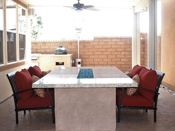 Well maintained home with pride of ownership. This beautiful home features many custom upgrades including upgraded granite counter tops with back splash, whirlpool double-oven, custom ceiling surround sound speakers in living room and media room and pre-wired media outlets. The exterior includes a 26 x 9 allumiwood insolated patio cover, fan/light fixtures, custom built large BBQ island with custom built gas fire table to enjoy on a beautiful evening. The garage has extra storage space above and the floor has been professionally painted with epoxy. Steps away is a dog run area, a covered picnic area , and playground. The community pool also has small pool for children, splash stations and BBQ areas.