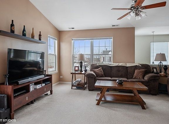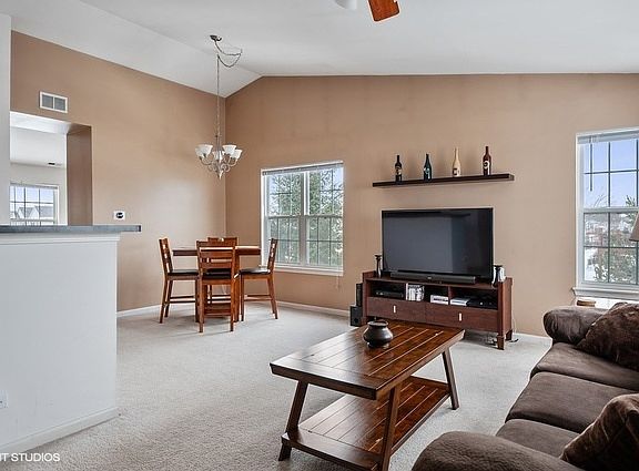 Highly desired 2 bed / 2 bath second floor condo in the Falling Waters community. This end unit provides amazing natural light, vaulted ceilings, and an open concept living space ideal for entertaining. Cuddle up by the fireplace on a cold winter day or spend time outside on your private deck grilling in the summer. Large master bedroom with walk-in closet, ceiling fan and private bathroom. Plenty of closet space and storage throughout. Attached 1-car garage and tandem driveway parking. Water heater new in 2015; HVAC and A/C new in 2017 along with Washer/Dryer. Association fees covers access to clubhouse, swimming pool, basketball and tennis courts. Ideal location with close proximity to I-94, Gurnee Mills Mall, RT45, various Forest Preserves and Six Flags Great America. Bring an offer and start enjoying this home today!