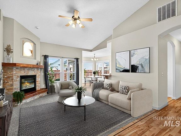 Welcome home to this beautifully refreshed single-level home situated on a desirable corner lot in a great central Meridian location. Recently updated with brand-new interior and exterior paint, carpet and roof. This home is fresh, bright and move-in ready. Inside you'll love the abundance of large windows that fill the home with natural light throughout. Split bedroom layout with dedicated office offers privacy, comfort and convenience with effortless flow. Step outside to an east-facing, private backyard, perfect for morning sunshine and afternoon shade, gardening, entertaining or simply relaxing. Car and toy lovers will appreciate the huge 4 car garage with shelving, storage and full roll up garage door to the back yard and large shed. This home blends comfort, practicality and fresh modern updates - don't miss your chance to make it yours!
