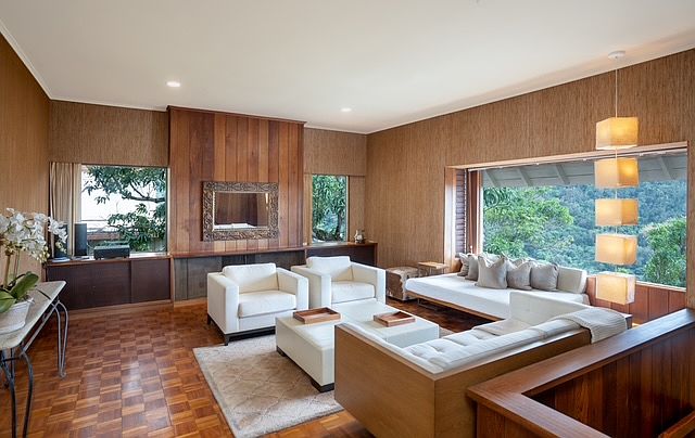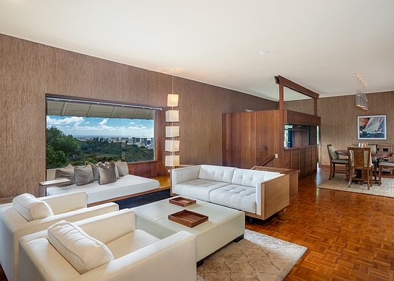 This charming fully furnished single family home is secluded high on Pacific Heights on a 14,000 sq. ft. rim lot. It is a move in ready, well maintained and updated high end property only ten minutes from town. Six month minimum rental please. The home is two story with double walled construction and with both a fireplace and air conditioning. Ten foot ceilings and teak parquet floors grace the property. The forest is your front yard with giant banyan trees and mango trees to enjoy. The view is both to the sea over Waikiki and to the top of the Koolau mountain. The house faces East thus is naturally cooled by trade winds coming over the mountain. This is a very quiet area so best if you are too. Please no pets and no smoking. Tax included. Tenant pays utilities.
