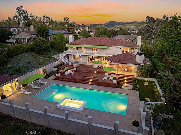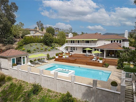 Welcome to 30982 Steeplechase Drive in the prestigious Hunt Club community of San Juan Capistrano. This California mid-century modern property offers an exquisite blend of indoor and outdoor living, designed with impeccable attention to detail. The home features an open concept floor plan, seamlessly connecting living spaces. High end finishes throughout create an elegant and comfortable ambiance. A wall of side by side doors seamlessly integrate indoor and outdoor spaces, creating a breathtaking view of the pool and deck upon entering the front door. The whole home enjoys natural light from well appointed windows and doors. The chef’s kitchen with Italian Carrera marble counters, a large island, and professional-grade appliances enhance the culinary experience to include a top-of-the-line six burner Wolf range with double oven, two Sub-Zero refrigerators and two Miele dishwashers. The home boasts five en-suite bedrooms, including one on the main level ample in size which could serve as a separate guest quarters with its own exterior entrance. The oversized primary suite is a sanctuary for unparalleled comfort with a private balcony, an expansive seating area, and walk-in closet. The primary bathroom with heated tile floors, dual sinks and stand alone tub is done with functionality and sophistication. There are three fireplaces in the home, one in the living room, the primary bedroom and the outdoor dining area. The backyard has been transformed into an entertainer’s dream with its own pool house, a sparkling pool with Baja Ledge and a large spa. Enjoy alfresco dining, gatherings by the fire pit and meals cooked at the modernized BBQ station. Additional amenities include a separate office with built in cabinetry, two outdoor BBQs, a butler’s pantry and large laundry room with two Electrolux washers and dryers, surround sound stereo system, water filtration system and alarm system throughout the house. Just minutes from Dana Point Harbor, charming shops, five-star resorts, pristine beaches, and top-rated schools, this home epitomizes the best of Southern California living. The Hunt Club is a gated, equestrian community with multiple horse riding trails. This residence presents an incredible opportunity for discerning buyers seeking an extraordinary property in a great neighborhood.