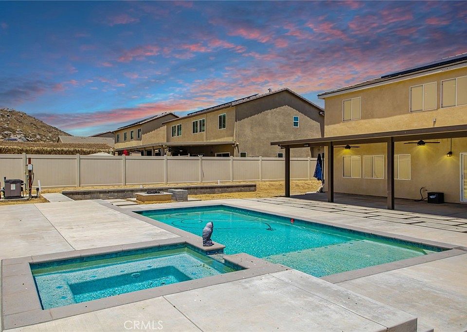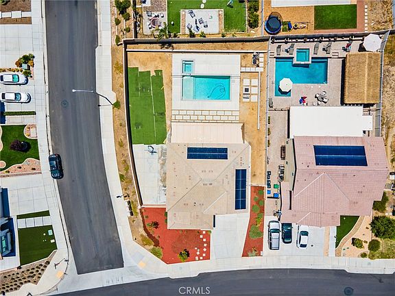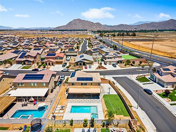 Luxurious Living for an even better price!! Perfect Floorplan! Backyard Oasis with room for your final touches! This 2,836 sf dream home has a CUSTOM sparkling pool & spa, 5 bedrooms, 4 bathrooms, 2 car garage, and HUGE 11,543 sf corner lot with a basketball court and an oversized back patio that has an Aluma wood covering with lighting and fans for those fabulous BBQ’s and fun get togethers! The gourmet kitchen has quartz countertops, SS appliances, large 3-seater island, walk-in pantry, and beautiful stained farmhouse cabinetry with hardware make this kitchen perfect for your family Chef. This open concept floorplan provides space for cooking, dining, and lounging as the kitchen overlooks the family room and gorgeous views of the private backyard paradise! Luxury vinyl flooring and carpet make this home user friendly, and the rich brown hues make this home feel immediately warm and inviting! Multigenerational potential makes this a versatile and guest friendly home. Downstairs, the sliding glass door opens to the custom patio cover with rectangular, concrete stepping pads to the gorgeous pool and spa. To the left is the concrete basketball court and to the right is the fire pit and retaining wall ideal for your choice of flowers, fruit trees, or raised herb garden. With a massive corner lot, you have only 1 neighbor to the right and behind. 4 GUEST BEDROOMS: 1 ample downstairs bedroom with its own full bathroom, which could be the guest or in-law suite. The upstairs has 3 carpeted bedrooms that are a good size with nice closet space. A versatile bonus/office/game room has the potential to be a 6th bedroom with a closet. The MASTER bedroom with en-suite is quite spacious and the bedroom offers a large nook for your dresser and TV. 4 BATHROOMS: Each bath offers modern luxuries, including mirrors, light fixtures, and farmhouse cabinetry with SS hardware. There is a ½ bath downstairs for guests and 1 full bath with the downstairs bedroom. 1 shared bathroom with dual vanities services the 3 bedrooms upstairs. The MASTER bath has SS glass walk-in shower and luxurious garden tub, dual vanity with custom mirrors, and a private bath and large walk-in closet! The garage is roomy and has an EV plug, tankless water heater, whole house water filter and water softener system, which expand the life of your appliances & plumbing fixtures. Solar is PAID off and has a warranty! Come and tour this energy efficient and highly upgraded home with low HOA can be yours now!