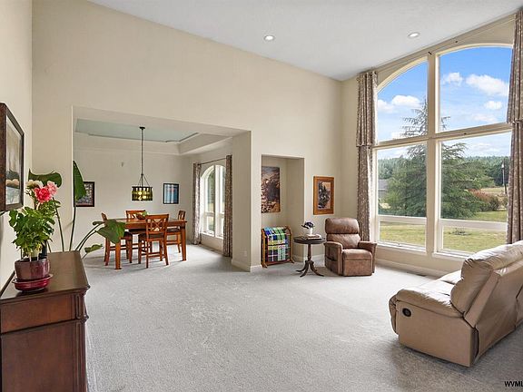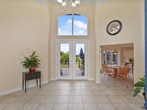 Everything you need all on one level, including the 5 flat, usable acres. The grand entrance sets the stage for luxury and room to spread out in this 3500+ sf home with 4 bedrooms. Formal and informal dining, family room open to kitchen, and floor to ceiling windows throughout bring the outdoors in. Master suite offers jacuzzi tub with two sided fireplace, huge walk in closet, and built ins. RV garage/shop w/2-12' doors and interior wall separating RV from two car garage side. RV dump. Possible dual living.