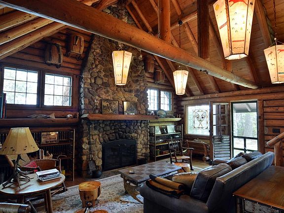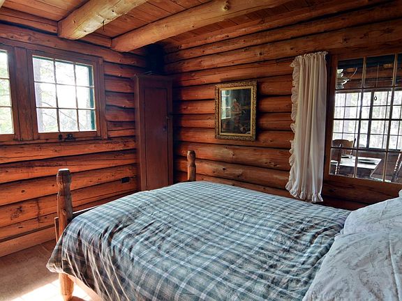 It’s rare to find a log cabin with over 100 acres of timberland and over 2,000 feet of frontage on a great fishing lake in northern Wisconsin. Rarer still is finding a vintage log cabin updated to 2015 standards, restored and furnished in period detail, overlooking west-facing, sand-bottom shoreline and so private that wild elk make the property home. Quality . . . Craftsmanship. . . Taste. . . The 1.5 story Lodge contains about 1,500 sq. ft. of space with a comfortable great room and wood-burning stone fireplace, a new kitchen, a lake-view enclosed porch, two bedrooms, a full bath and a finished walkout basement with a tiled family room and plenty of built-in storage. The kitchen features an apron sink and a charming replica country cook stove. The owners took special pride to integrate artistic furnishings and lighting throughout this beautifully restored cabin. The sellers kept much of the historic character of this north woods Lodge by incorporating original construction with thoughtfully selected new details. Ancient pine beams span the great room and compliment the refinished original maple floors throughout the main level. The open log stairway to the sleeping loft is finished with a hand-crafted log railing. The restored wooden clad windows are small-paned as they would have been when this cabin was built. The cabin’s original garage was converted into a 4-season sleeping cottage. Narrow and long, with a high-peaked ceiling the adorable cottage interior is pine paneled and features a wood stove, baseboard heat, matching bunk beds, a dining area and new Marvin wood-clad windows that offer lake views. Other Lodge features include a lakeside deck, a pleasant path along the shoreline and a winding gravel entry road leading in almost a mile from the road. This is the place to enjoy the serenity of lake living and the out of doors whether you choose to kayak or canoe, snowshoe or ski, bike or hike or just relax in an Adirondack chair on the porch. Pine-covered Wildwood Point, the setting for Wildwood Lodge, is a small peninsula that reaches a hundred yards into White Bass Lake. There’s a little over 1/3 mile of shoreline that includes a shallow bay, boulder-lined lakeshore and a mix of hard and soft shoreline bottom. The deepest contours of this 113-acre lake (30 feet) are found just off the shoreline in front of the Lodge. White Bass Lake is a good fishing lake for large mouth bass, panfish and even musky. Blue gills, sunfish and crappies are abundant and are lots of fun to catch on featherlight gear or with a fly rod. The forest that covers much of the 102 acres of land consists of red and white pines, birch and maple. There are spruce and balsam stands, open fields and some wetland areas. The land supports a wide variety of animal and birds and is in the center of the range for the Clam Lake Elk herd. Cable and Hayward, WI, are nearby. Both towns have regional jet airports, restaurants and shopping. The area is nestled in the Chequamegon National Forest and is renowned for its outdoors recreation: World Class Nordic Ski and Mountain Bike Trails, hiking and backpacking trails, hunting and fishing as well as canoe and kayak opportunities. An Oasis of Space. . . Nature. . . Land. . . and Sky. . . Wildwood Lodge will bring your family a richer, deeper North Woods experience. Wildwood Lodge is the place you wish still existed. And guess what? It still does!