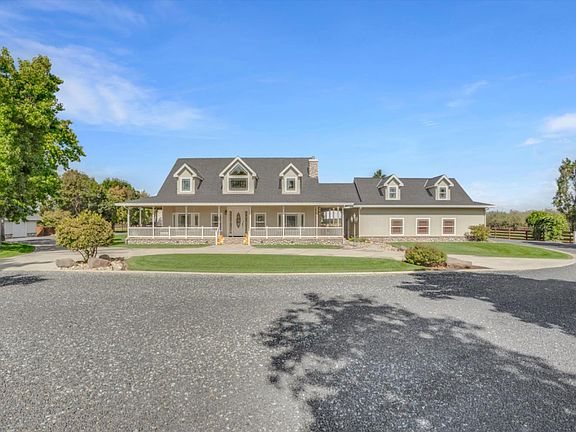 9.8 acres of country living at its finest! This property is a DREAM - when you pull into the long driveway lined with beautiful trees you see a stunning 2,974 square foot home with a large wrap around porch. The home has 4 bedrooms, 3 bathrooms, gorgeous natural lighting throughout, wood flooring and a 3 car garage with an extra room upstairs. When you are cooking or eating in the kitchen you look out to the beautiful backyard and pasture. Outside you will find a 54 x 60 shop with a tack room, a workshop, horse stalls, a second 30 x 40 barn, raised planter beds with a garden shed and OID irrigated pasture. Plenty of room to host events, ride horses, raise cattle - you name it! Property like this does not come on the market often, now is your chance to call it yours!