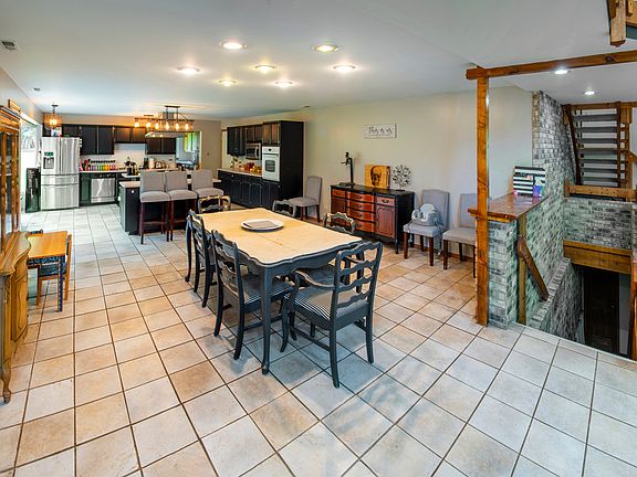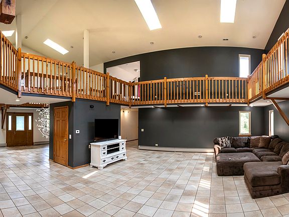 LAND, LOCATION & MORE LAND. Just shy of 11 acres stretched along Route 59. Tucked away in seclusion is a 4,000+ sq. ft. brick residence waiting for fresh updates. It boasts another 2,800 sq. ft. of basement space with an attached 3 1/2 stall garage. Current residence has a lodge feel to it. The possibilities are enormous for this property. Enough land for future development. Developers and non profit organizations bring your ideas and enjoy the location and privacy. Brand new boiler installed 12/22. Sold "AS IS".
