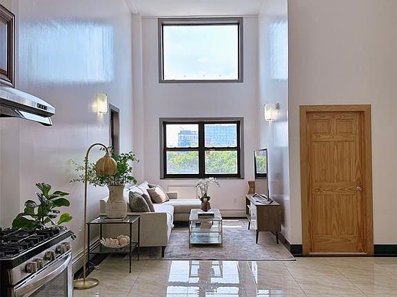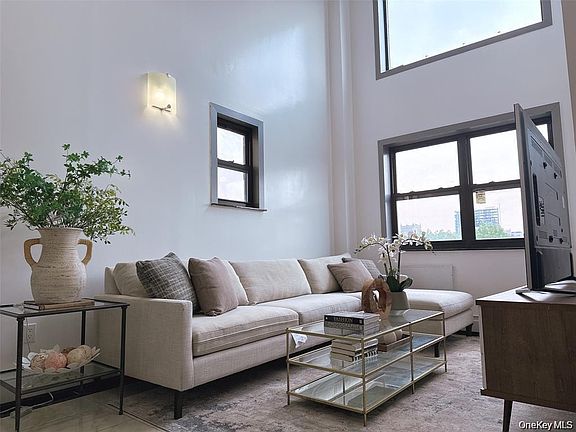 Discover this brand-new condo located in the vibrant heart of downtown Flushing, offering a rare 20-year tax abatement. With soaring 16-foot ceilings, this residence features two spacious bedrooms and a beautifully designed two bathrooms with contemporary tile work and stylish lighting fixtures. The modern kitchen is equipped with sleek stainless steel appliances, combining elegance with functionality. The unit offers $1113 gross square feet and $943 interior square feet, providing a comfortable and efficient layout. Enjoy views of the parking area and the unbeatable convenience of being just a short walk from Main Street and the 7 train station.