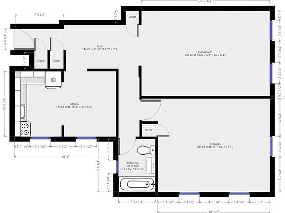 - Total interior livable area: 923 sqft