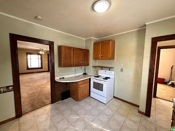 Located just steps away from Gehlen Catholic Schools and a few blocks from downtown Le Mars, this is a nice opportunity for a buyer that is looking for a starter home, or add to your portfolio as a rental income property. The main floor living room/dining room is perfect for hosting and placed just off of the kitchen. There are 2 rooms on the main floor that classify as bedrooms according to the County Assessor. 1 was used as a bedroom and the other was converted to a laundry room for the ease of having it on the main floor. The full bath is also on the main floor. Both upstairs bedrooms have nice closet storage. The well lit enclosed porch offers a nice area to relax and enjoy a little downtime after a long day. The basement is unfinished and can be made into anything you desire! The lot is .21 acres and the home was built in 1920 and the total gross living area is 1,334 square foot. The garage is a detached 2 stall garage with 624 square feet.