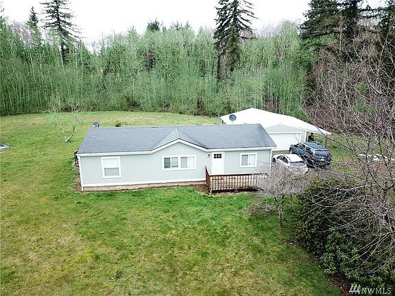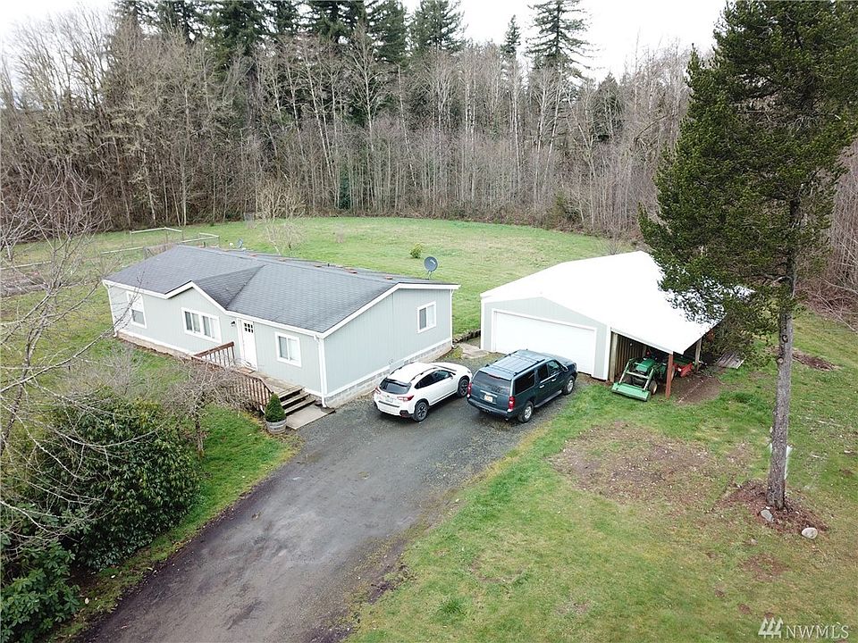 5.7 rural, level acres partially fenced/crossfenced for livestock. No Flooding! Fertile soil, fenced in garden area to keep deer at bay. Some tree along the seasonal creek near the back property line. Clean manufactured home is set on runners, tie downs, full concrete block foundation. 3 bd/2bath. 2 car detached garage. Not far from access to Capitol Forest trails. Lots of game animals in this quiet, secluded location along a dead end road near quiet Oakville. Easily financed, FHA, USDA, VA.
