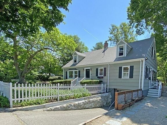Absolutely Adorable Cape on a surprisingly quiet corner lot in the welcoming neighborhood of Lower Falls.This lovingly maintained home retains classic cottage details like window seat & built in shelves in the DR area, a window into the knotty pine sunroom w/ walls of large jalousie windows. Charming kitchen with good work space & large cupboards w/ sliding glass doors. Currently 6 rooms & 2 BRs, buyer could grow into the full length & width, walk up attic to create a wonderful BR suites. Good ceiling height in bsmt with semi-finished spaces upgradable as playroom or man-cave {there is room to create your own she-shed out back}. Ext. living spaces inc a large patio & crushed stone lounge areas edged by perennial beds & vines creeping up the new privacy fence. Walk under the trellis to a grassy side yard w seller's stone patio fit for a fire pit. Walk to Riverside, parks & fields.