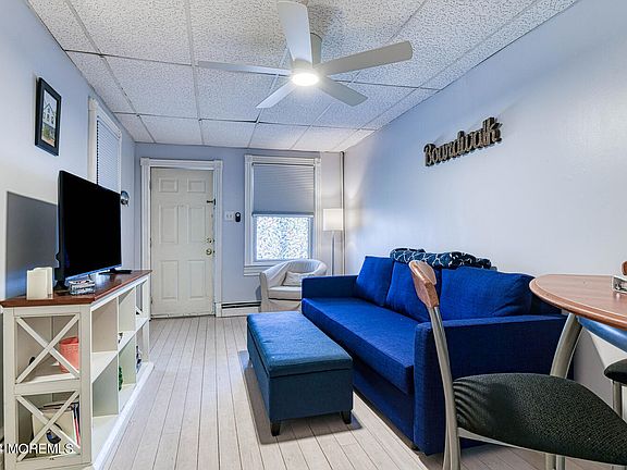 JULY WEEKLY RENTAL - DUE TO CANCELLATION, available between July 11 - July 31. 1st floor, 1 bedroom/1 bath apt with shared front porch is perfect for enjoying all that Ocean Grove has to offer. Living room with sofabed for guests, SMART TV with wifi, Eat-in Kitchen & Bedroom Area w/Queen Size Bed. Bathroom with tub/shower. Perfect space for 1 or 2 people. Just 2 blocks from the beach, 1 block from Founders Park & the footbridge to Asbury Park & close to the Great Auditorium & downtown Ocean Grove. 1 quiet, housebroken Dog considered, no cats. A/C, wifi, 2 beach badges, & beach chairs. Just bring your clothes & toothbrush! No smoking anywhere on property. Apt was freshly painting in May 2024 along with some new furnishings, decor and new stove. $1500 a week, prorated. AUGUST BOOKED. $500 sec deposit & $150 exit cleaning fee, $100 pet rent. Ask about September and beyond. No laundry on property.