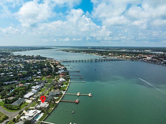 Welcome to an unparalleled gem of St. Augustine, where the timeless elegance of mid-century Spanish architecture meets the breathtaking beauty of Florida’s most historic city. This extraordinary estate, perched on the serene banks of the Intracoastal Waterway, offers a once-in-a-lifetime opportunity to own a piece of paradise with panoramic, unobstructed 180-degree views that simply cannot be replicated. Imagine waking up each morning to the sight of majestic ships and sailboats gliding past your backyard, with the iconic Bridge of Lions, the storied Castillo de San Marcos, and the timeless charm of historic downtown St. Augustine as your daily backdrop. From the Vilano Bridge to the Cross at the Mission Nombre de Dios, every inch of this view is a living masterpiece, showcasing the very best of what St. Augustine has to offer. On special occasions, your private oasis becomes the perfect front-row seat to the annual Fireworks Over The Matanzas. The property itself is a testament to fine craftsmanship and thoughtful design. Floor-to-ceiling windows perfectly frame this breathtaking view, allowing natural light to pour in and ensure that the stunning panorama is always the star of the show. The Spanish-style roof edge, adorned with intricate bird carvings is complemented by copper gutters that add a touch of sophistication. Step inside to discover heart pine floors in impeccable condition, and Saltillo tile, sourced from the riverbeds of Saltillo, Mexico, prized for its smooth, durable surface. With the property elevated above the ground, you can rest easy knowing your investment is secure. The HVAC system was updated in 2018 and the architectural shingle portion of the roof was installed new in 2016. The two car garage also offers an additional half bath. And for those with grand visions, the included blueprints provide the option to add a second story, further enhancing the already magnificent views. A rare feature in this coastal paradise is the potential for a private deep-water dock. The property is equipped with pilings from a 120 foot dock, previously permitted by the city, allowing you to build a dock that perfectly suits your boat and lifestyle. Imagine setting sail from your own backyard, with the historic heart of St. Augustine just minutes away. This is more than a home; it’s a legacy—a unique, irreplaceable vantage point that offers the best view in all of St. Augustine. Whether you’re enjoying the short walk to the vibrant restaurants and shops of historic downtown or simply savoring the tranquility of your private waterfront sanctuary, this is a rare opportunity to own a slice of history with a view that can never be duplicated. Seize the chance to make this dream home your own, and experience the ultimate in luxury living.