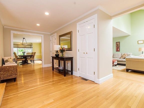 Bright and sunny contemporary Cape is beautifully sited amidst lush landscaped grounds, stonewalls and gardens. Flexible floor plan blends the best of indoor/ outdoor living with exterior access to private deck, patio and balcony. Foyer leads to front to back fireplaced living room with built -in and French door to fabulous deck. The chic dining room features crown moldings and picture window with breathtaking views of lovely yard. Magnificent kitchen includes double ovens, walk in pantry, family desk area, dining area and large center island. Inviting family with stunning beamed ceiling, skylight, fireplace and built -ins. The generous master suite with soaring ceilings, walk in closets and serene master bath creates a private oasis. Loft office on second floor allows for a private work space. Lower level includes, mud room, playroom and exercise room. Meticulously maintained property in desirable neighborhood with gorgeous yard. Easy to show by appointment! Mask & gloves required!