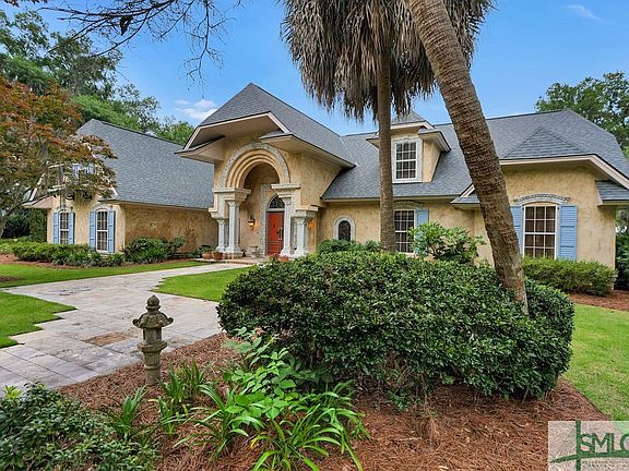 ELEGANT, STATELY AND STUNNING WITH BREATH TAKING VIEWS! This one of its kind custom home was built with perfection in mind, offering over 5000 Sq Ft of quality and craftsmanship like no other. The foyer welcomes with unobstructed views of the Wilmington River & Intracoastal waterway. The well thought out design of this home offers 4 bedrooms; 3 being on the main level and 3 1/2 baths. Both formal and casual living spaces are designed to capture the best water views. The large gourmet kitchen is a chef's delight; featuring 2 islands, wine cooler, 2 sinks, sep. freezer, 2 pantries & tons of cabinetry. Large primary suite has oversized double closets & office area. 1 bedroom & bath located on upper level w/viewing deck. Enjoy outdoor living on the covered porch as you watch boats go by. This unique and meticulously kept home is located at the historical site of Fort Bartow and just minutes from Savannah's historic district and Tybee Island. A 30' boat slip conveys. Community is gated.