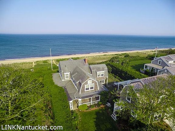 Quintessential Sconset Bluff Home with guest house and garage. Beautiful yard and gardens overlooking the Atlantic, dunes and beach. All common rooms open onto a wonderful wrap-around covered porch. House is fully insulated and heated for year round use. Private stair case leads down to beach.