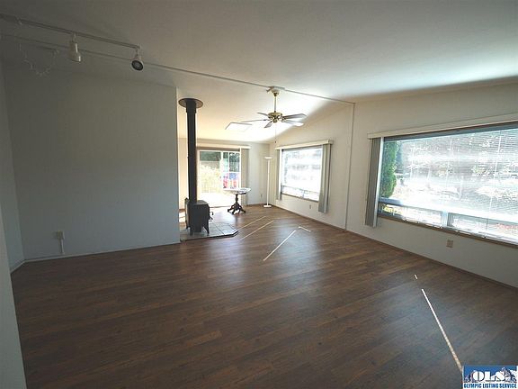 Open & light 2 BR, 2 BA home w/tons of storage! Sunny Southern exposure. New, large wood deck, large breezeway between house & large 3 car garage or 2 car w/shop. An acre w/partial mtn view, apples, peach, fig, cherries, berries. Greenhouse & shed. Close to the Dungeness Recreation Area & Spit w/camping, trails, & beach! Area of nice homes, conveniently located between Sequim & Port Angeles. Both baths are 3/4.