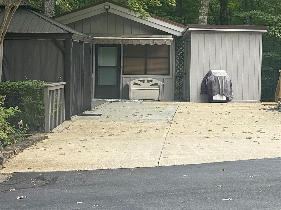 Welcome to 31 Boulder Drive — a unique RV lot extension designed for comfort, convenience, and flexibility. This 1-bedroom, 1-bath unit easily accommodates up to a 45-foot motorcoach and offers a welcoming retreat with both indoor and outdoor living spaces. Comes fully furnished, only the outdoor grill is excluded. Inside, you’ll find a queen bed, dresser, closet, table and chairs, and a cozy living area with wood walls, laminate flooring, ceiling fan, and heaters in both the bathroom and living room. Additional features include two window units, a mini fridge, microwave, coffee maker, and built-in blinds for added privacy. Relax on the screened porch, complete with a table, chairs, and umbrella for outdoor enjoyment. The property also includes a storage shed (formerly with washer/dryer hookups), an on-demand hot water heater, and a double roof construction for peace of mind. Conveniently set up for RV living with added comforts, this property is ready for your mountain getaway or seasonal escape.