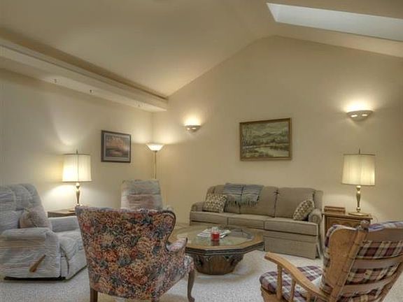 55+ Community. Restrictions are in Assoc. Documents. Adult only with restrictions on length of children's visits. Totally furnished or the furniture can be removed. Easy living one level units close to town. Skylights make it light and bright. Partially covered front porch. R-19 insulation in walls and R-30 in ceilings. HOA includes: water, sewer,trash,basic cable tv, security system for emergency pull cord in bath, windows washed twice yearly, heating filters changed 2 times yearly, snow removal, common area landscaping and grounds maintenance. 1 pet allowed with board permission.