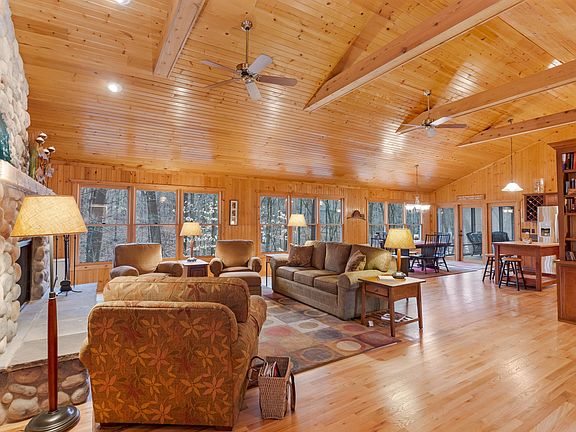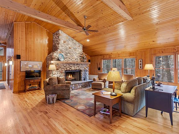 Pure Michigan! Welcome to #31 Camp Madron. This property checks all the boxes on your wish list for a Michigan retreat: inland lake, beach, hiking and skiing trails, orchard, garden, stream, forest, peace and quiet.Beautiful wooded homesite surrounded by 216 acres of nature and nestled in a former Boy Scout Camp. This is the perfect retreat to unwind and unplug. From the moment you arrive, you can feel the connection to nature. This 3 bedroom 3 bath home offers great entertaining space plus the screened porch and ''Michigan Bunkie'' will be the favorite spot for everyone to kick back, whether you turn the Bunkie into a ''Man Cave'' or a ''She Shed'' you and your guests will appreciate the extra space. Inside, the house offers a great room with massive fieldstone fireplace, open concept living,