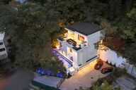 In-home glass elevatorSoaring ceilingsClean architectural linesFloor-to-ceiling glassCustom aquariumRadiant heated floorsCustom wine display
