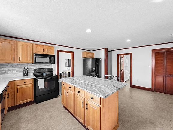 - Workshop/Hobby Area, Kitchen/Dining Room Combo, Historic Millwork, Kitchen Island, Solid Surface Countertop(s)