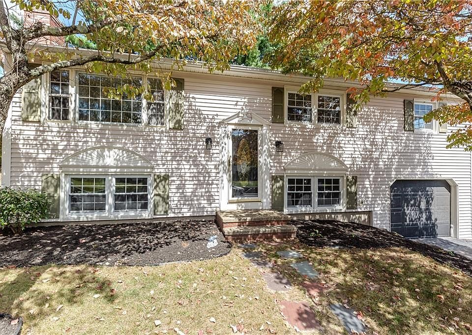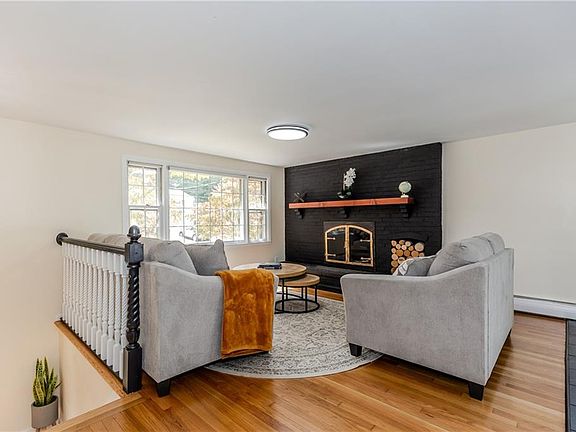 This completely renovated 4 bed, 2 full bath raised ranch blends modern design with warm, welcoming touches. The stunning kitchen is a dream, featuring quartz counters with seating, sleek cabinetry, and on-trend lighting, and is open to a comfortable dining area with sliders out to the back deck. The living room offers a statement brick fireplace and abundant natural light, while the lower level family room boasts exposed beams and a second brick accent wall for added character. Both bathrooms shine with contemporary fixtures and finishes, including a double sink vanity in the main bath. Outdoors, enjoy a private backyard lined with trees, a spacious deck for entertaining, and a one-car garage. Move-in ready with top-of-the-line upgrades throughout, this home offers comfort and style in every detail.