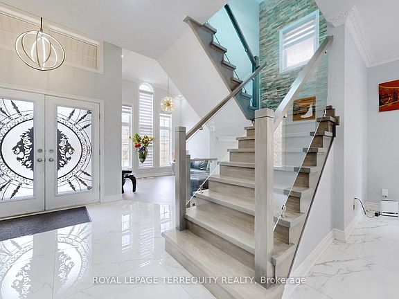 This beautifully upgraded 4-bedroom, 4-bathroom home offers an exceptional blend of modern style and comfortable living. Situated on a quiet, family-friendly crescent, this property boasts impressive curb appeal with a classic brick façade, double-car garage, and elegant entryway. Step inside to a bright, open-concept layout featuring soaring ceilings, oversized windows, and sophisticated finishes throughout. The sun-filled living room and its soaring ceiling create a warm and inviting atmosphere. The spacious dining area seamlessly connects to the heart of the home, a designer kitchen featuring an oversized center island with breakfast bar, premium stainless steel appliances, built-in ovens, custom cabinetry, and an oversized fridge. Perfect for hosting and everyday living! The cozy family room offers a beautiful stone feature wall, a gas fireplace, and expansive windows for natural light. An ideal space for relaxing or entertaining guests. Upstairs, you'll find generously sized bedrooms with large closets and upgraded flooring, including a luxurious primary suite complete with a spa-inspired ensuite bath and walk-in closet. Elegant, thoughtful details like modern lighting fixtures and glass stair railings add an extra touch of refinement. The lower level offers tremendous potential with a clean, open layout, ready to be finished as a recreation area, home gym, or in-law suite. The convenient main floor laundry/mudroom with access to the garage adds everyday practicality. Step outside to your private backyard, ready for family gatherings, summer BBQs, and outdoor fun! Easy access to major highways makes commuting a breeze. Don't miss the opportunity to call this turn-key, meticulously maintained home your own. in and start enjoying the lifestyle you deserve! Move