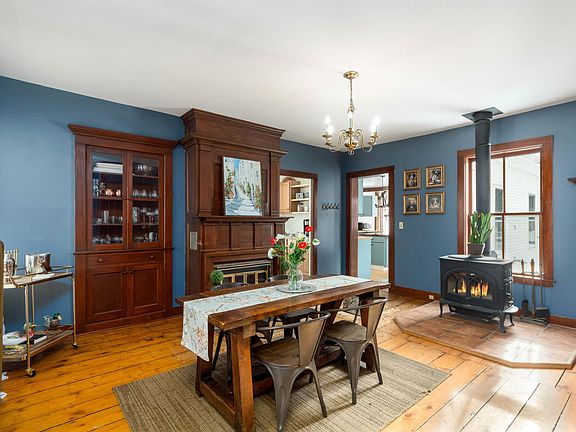 Make yourself at home in this charming 6-bedroom farmhouse with plenty of space both inside and out! You’ll love the unique layout of this home beginning with a spacious front living room, great for entertaining. Enjoy a good book in the cozy library with a connecting first-floor bedroom with en suite ¾ bathroom. In the dining room, you’ll love the beautiful original woodwork over the fireplace, built-in glass door hutch, and a wood stove. The kitchen has been tastefully updated with a new sink, disposal, fridge, dishwasher, backsplash, countertops, and light fixtures. There’s also a center peninsula with a gorgeous live edge countertop and seating for a quick meal on the go. Just beyond, you’ll find a sunny family room with views to your back porch and yard. An updated laundry room and pantry off of the dining room includes new flooring, cabinetry and paint. Upstairs, you’ll find 5 bedrooms including 2 that have been converted into spacious walk-in closets. There’s also a full bathroom and a great landing space on the second floor with enough room for seating or a desk. Other features include fresh paint and new light fixtures throughout, original wide plank pine flooring and a screened-in front porch. Outside, take advantage of the expansive fenced-in yard with a pergola, raised garden beds and a large barn that provides tons of extra storage space. Great location, just minutes from schools, shopping, dining, parks and Lake Arrowhead!
